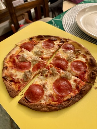 We had a mix of pizza, chicken tenders and mozzarella sticks for dinner which we had picked up at Wegmans earlier in the day.