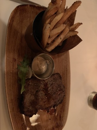 We placed our order and were brought the bread rolls which were yummy as always. I ordered the filet mignon with truffle fries and Rob had the New York Strip.
