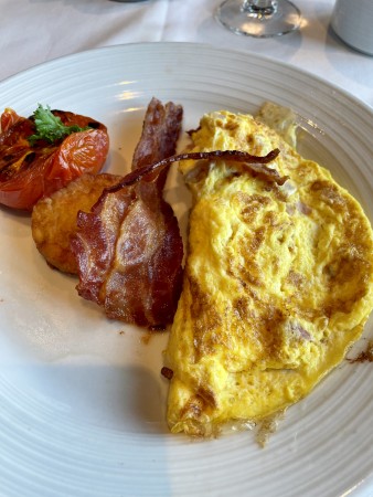 We once again had breakfast in the MDR; I had the fruit plate then we both had omelettes and I had a croissant and Rob a muffin.