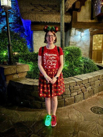 I got Jennifer to take a photo of me in my full Christmas outfit – the comment about my shoes should now make sense. I got so many comments and compliments on them over the evening.