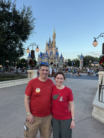 We headed across towards Adventureland/Frontierland stopping briefly to take a photo of Jennifer and Tom in front of the castle.