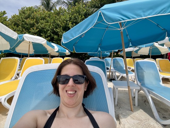 There were loads of loungers which was a bit of a surprise as there was another ship in port but we easily got a nice quiet spot near the private cabanas (that we are too poor to rent!)