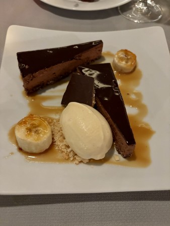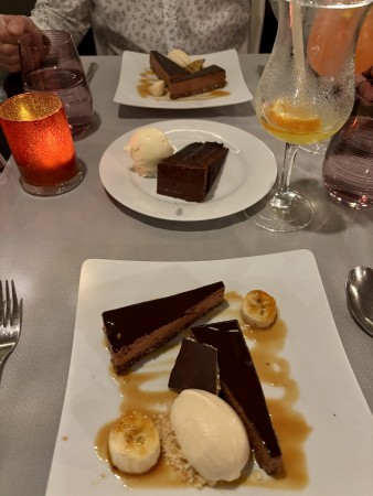 Then Wadzy (our assistant server) convinced Rob to try a different dessert! We both had the chocolate bar with Rob’s chocolate cake in reserve (he ate both.) I also had a coffee