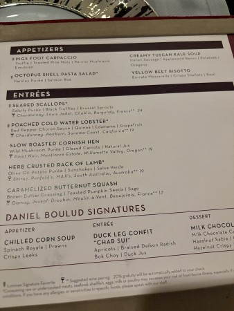 We got back on board and then had a drink and a rest in our cabin before dinner, no surprise we went to Luminae