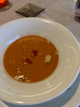 I had tomato soup and Rob had pork belly for our starters.