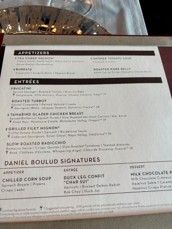 We headed to luminae again for dinner – we had considered booking one of the speciality restaurants but we checked the menu and found that we could get the food we would have ordered in Luminae (or at least they looked pretty similar.)